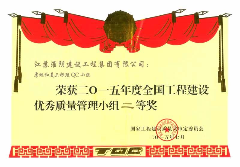 2015年全国工程建设优秀质量管理小组二等奖厚地和美三标